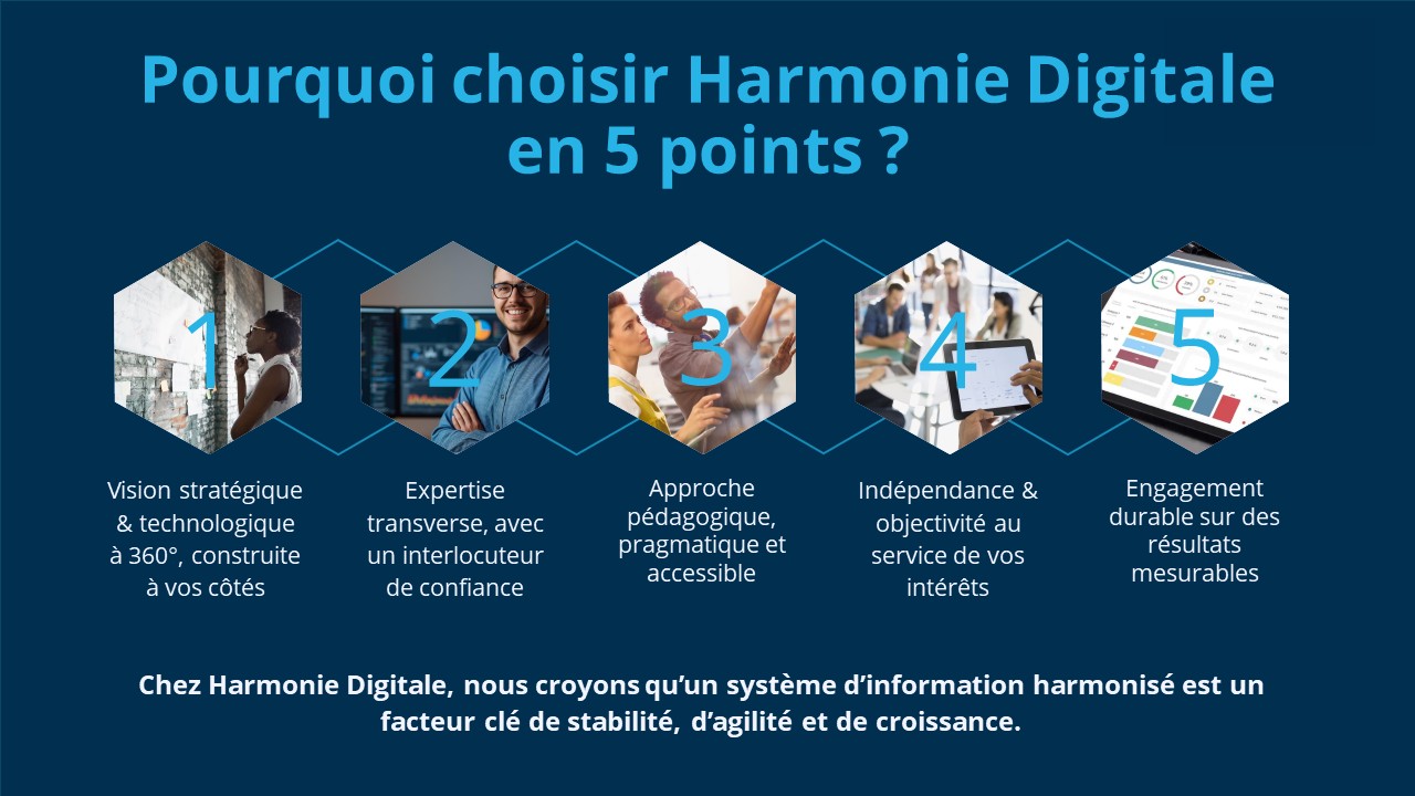 Harmonie Digitale intervient à la croisée de la stratégie, de la technologie et de la performance.